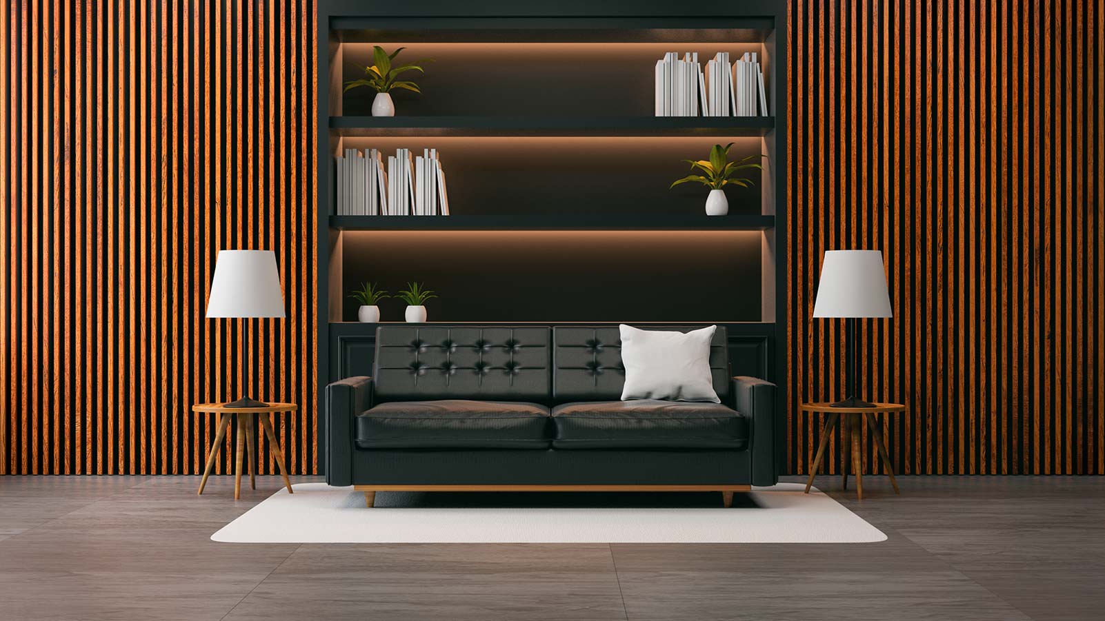 „Vor dunklem Profilholz mit matter Oberflächenstruktur lässt sich Unterhaltungselektronik problemlos installieren; die Kabel können Sie hinter einem Paneel verschwinden lassen“, so erfährt man bei Holz-Baumüller aus Kissing.